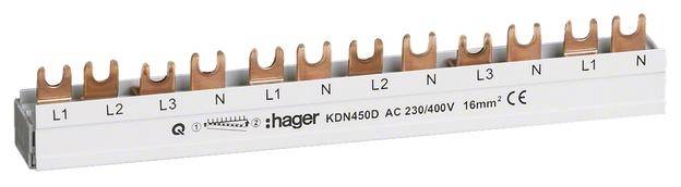 HAGER Phasenschiene 3P+N 80A KDN450D Gabel 16mm² 12M f.3P+N u. 1P+N Abgänge
