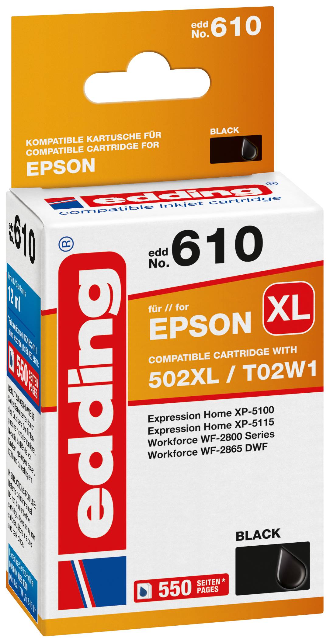 EDDING Tintenpatrone ersetzt Epson 502XL / T02W1 Kompatibel einzeln Schwarz EDD-610 18-610