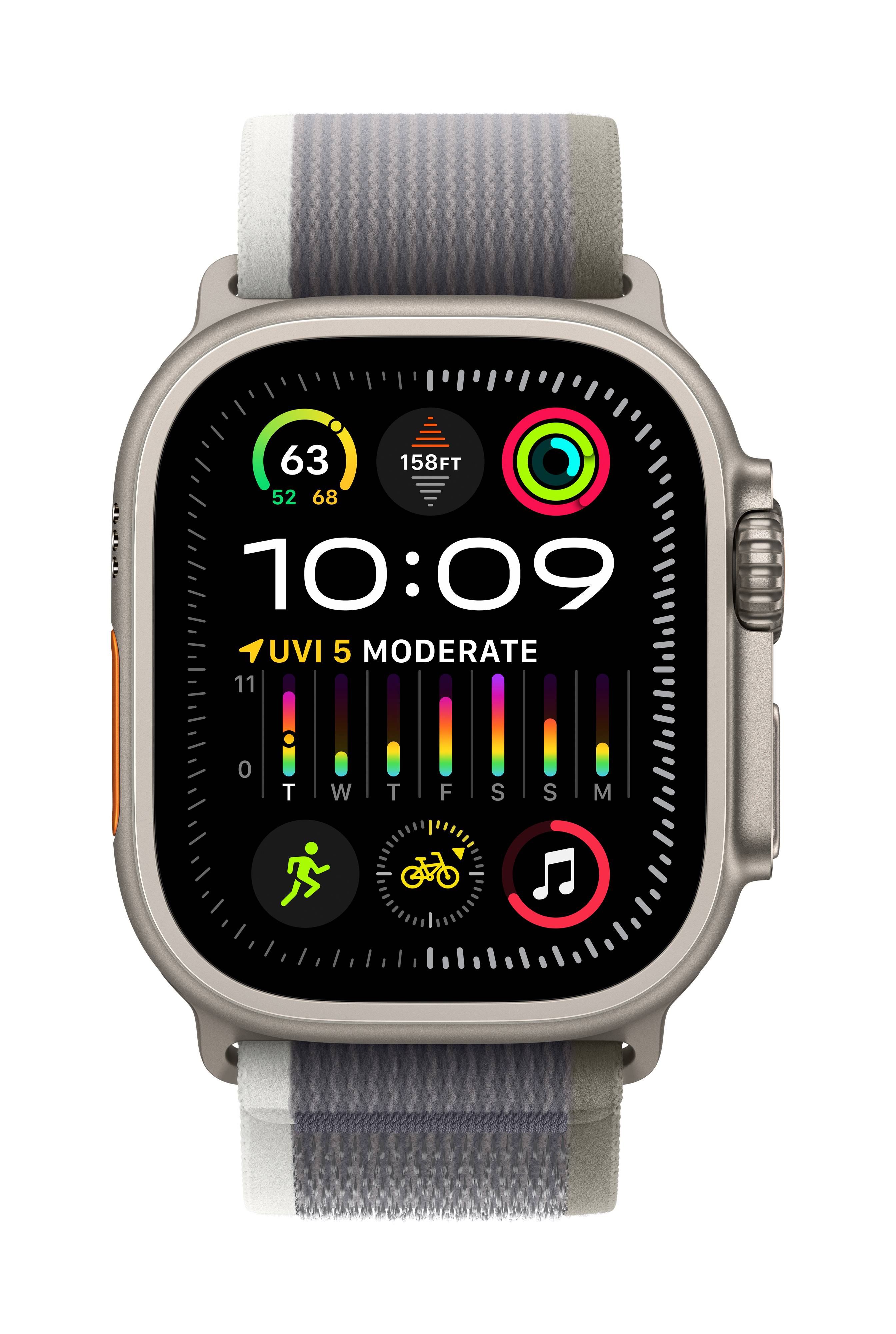Gewicht: 61,4 g,Breite: 49 mm,Tiefe: 14,4 mm,Dicke: 4,4 cm,Akku-/Batterietechnologie: Lithium-Ion (Li-Ion),Akku-/Batterietyp: Integrierte Batterie,Akku-/Batteriebetriebsdauer: 72 h,Batteriereichweite: 36 h,Kabelloses Aufladen: Ja,WLAN-Standards: Wi-Fi 4 (802.11n),Bluetooth-Version: 5.3,Bluetooth: Ja,Kopfhörer-Anschluss: Bluetooth,Nahfeldkommunikation (NFC): Ja,USB Anschluss: Nein,GPS: Ja,GLONASS: Ja,4G-Standards: LTE,Mobile Netzwerkverbindung: Ja,BeiDou: Ja,Galileo: Ja,Quasi-Zenit-Satelliten-System (QZSS): Ja,Mobilfunknetzgenerierung: 4G,Höhe bei Betrieb: -500 - 9000 m,Betriebstemperatur: -20 - 55 °C,Zertifizierung: EN13319 certified,Wasserdicht bis: 100 m,Internationale Schutzart (IP-Code): IP6X,Schutzfunktion: Staubresistent, Wasserfest, Wasserdicht,Marktpositionierung: Smartwatch,Form: Rechteckig,Armbandfarbe: Grün, Grau,Hinter Material: Keramik, Saphirglas,Bandgröße: S/M,Entfernbarer Gurt: Ja,Magnetischer Ladeanschluss: Ja,Größe des Uhrengehäuses: 49 mm,Farbe des Uhrengehäuses: Titan,Material des Uhrengehäuses: Titan,Akustische Signale: Ja,Elektronischer Kompass: Ja,Herzfrequenzmonitor: Ja,Wassertemperaturs-Sensor: Ja,Höhenmesser: Ja,Umgebungslichtsensor: Ja,Beschleunigungsmesser: Ja,Gyroskop: Ja,E-Mail: Ja,Tracking-Übung: Ja,Virtueller Assistent: Apple Siri,Militärstandard: MIL-STD-810H,Aktivitäts-Tracker: Ja,Herzfrequenzsensortyp: Electrical, Optisch,Haptische Rückmeldung: Ja,SOS-Alarmfunktion: Ja,Blutsauerstoff-Sensor: Ja,Hauttemperatursensor: Ja,Doppeltipp-Geste: Ja,Präzisionssuche: Ja,Meldungen über einen unregelmäßigen Rhythmus: Ja,Niedrige Kardio-Meldungen: Ja,Helligkeit: 3000 cd/m²,Display-Auflösung: 410 x 502 Pixel,Touchscreen: Ja,Display-Typ: Digital,Bildschirmtechnologie: OLED,Abgerundete Displayecken: Ja,Immer eingeschaltetes Display: Ja,Prozessor: S9,Prozessorhersteller: Apple,Eingebautes Mikrofon: Ja,FM-Radio: Nein,Eingebaute Lautsprecher: Ja,64-Bit Computing: Ja,Anzahl Prozessorkerne: 2,Flash-Speicher: 64 GB,Integrierte Kamera: Nein,Unterstützte mobile Betriebssysteme: iOS,Kabelloser Chipsatz: W3,Sturzerkennung: Ja,Sturzerkennung: Ja,Nachhaltigkeitszertifikate: CarbonNeutral,Enthält nicht: Arsen, BFR, Beryllium, Quecksilber, PVC